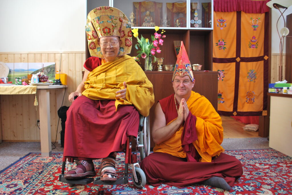 As a sign of appreciation of his vast activity for spreading out Dharma and especially Teachings of Kagyu Practising Lineage, Ven. Kyabje Tenga Rinpoche has honoured Lama Rinchen by offering him a “Hat Of The Knowledge Holder” (Tib.: Rigdzin Cho Sha, sanskr.: Vidyadhara-charya-mukut). During the summer course in 2010 in the Centre in Grabnik Venerable Tenga Rinpoche said: